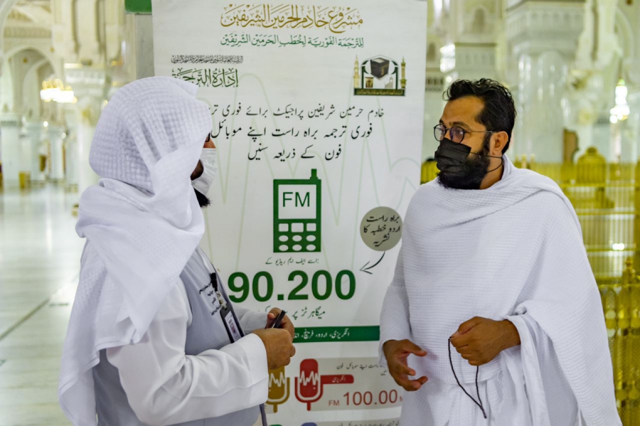 توفير خدمة الترجمة بلغة ضيوف الرحمن منذ استقبالهم إلى توديعهم